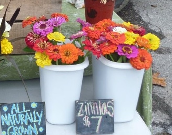 > You don’t have to be an expert grower. Single flower bouquets are enough to test the market. Dahlias, gladiolas, sunflowers, tulips and zinnias all catch people’s attention at market.